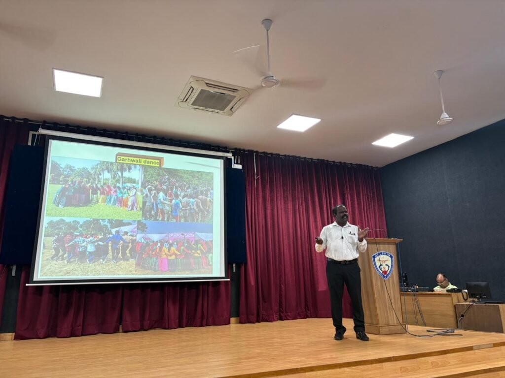 कार्यक्रम के मुख्य वक्ता, आईआईएसडब्ल्यूसी के प्रधान वैज्ञानिक एवं प्रभारी (पीएमई एवं केएम इकाई) डॉ. एम. मुरुगानंदम ने गढ़वाल क्षेत्र की जनजातीय संस्कृति, लोकनृत्य, गीतों और लोककथाओं की समृद्ध परंपरा का प्रदर्शन किया। उन्होंने बताया कि जनजातीय अभिव्यक्तियाँ न केवल सांस्कृतिक पहचान का हिस्सा हैं, बल्कि पर्यावरण संरक्षण और सामुदायिक संतुलन का भी सशक्त माध्यम हैं।