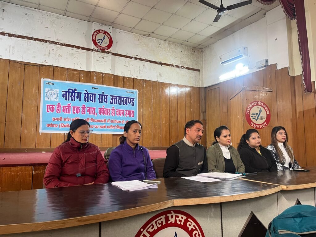 देहरादून : उत्तराखंड सरकार लगातार आंदोलन के संकट से गुज़र रही है ,सरकार प्रदेश स्थापना दिवस के रजत जयंती वर्ष के कितने ही ढोल पीट ले लेकिन धरातल पर कुछ अलग ही तस्वीर नजर आती है । पहले पेपर प्रकरण से किरकिरी,फिर उपनल कर्मियों का धरना और अब नरसिंग संघ की वर्षवार भर्ती की माँग ।दरअसल उत्तराखंड चिकित्सा आयोग द्वारा नर्सिंग अधिकारियों के 690 पदों के लिए विज्ञप्ति जारी करी थी जिसका उत्तराखंड नर्सिंग संघ विरोध कर रहा है । शनिवार को देहरादून में प्रेस वार्ता कर उत्तराखंड नर्सिंग संघ भर्ती प्रक्रिया का पुरज़ोर विरोध कर सरकार पर सवाल खड़े किए हैं । उत्तराखंड नर्सिंग संघ के संरक्ष विजय चौहान ने कहा पहले तो सरकार ने भर्ती लेट निकाली है और वो भी मनमाने तरीके से,चौहान ने कहा सरकार ने पिछली भर्ती 2020 में निकाली थी और भर्ती प्रक्रिया पूर्ण होते होते 5 वर्ष बीत गए हैं ,उन्होंने आरोप लगाए की भर्ती 12 वर्ष बाद निकली गई जिसमे कई अभ्यर्थियों का दो दो बार चयन हुआ बल्कि बाहरी राज्यों के अभ्यर्थियों का भी चयन हुआ लेकिन प्रदेश के बेरोजगार नर्सिंग अभ्यर्थी रोजगार से वंचित हैं । चौहान ने भर्ती प्रक्रिया का विरोध करते हुए कहा जैसे पूर्व में भर्ती वर्षवार और सीनियोरटी के आधार पर नियुक्ति मिलती थी उसी प्रकार भर्ती प्रक्रिया सम्पन्न कराया जाए और अगर सरकार आगामी 25 तारीख तक विज्ञप्ति वापस नहीं लेती है तो उत्तराखंड के बेरोजगार नर्सिंग अधिकारी सड़कों पर आंदोलन कर सरकार के ख़िलाफ़ बिगुल फूँकेंगे ।