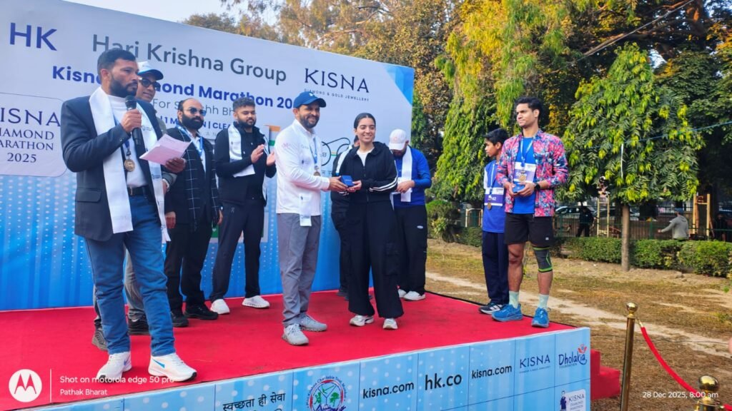 देहरादून, 28 दिसंबर, 2025: भारत की पहली ज्वेलरी ब्रांड-नेतृत्व वाली मैराथन के रूप में किसना डायमंड मैराथन ने एक नया राष्ट्रीय कीर्तिमान स्थापित किया है। हरि कृष्ण ग्रुप की अग्रणी ज्वेलरी ब्रांड किसना ने मुंबई में इस मैराथन के 10वें संस्करण का सफल आयोजन किया, जबकि देश के 56 अन्य शहरों में यह पहल पहली बार आयोजित की गई। ‘स्वच्छ भारत, स्वस्थ भारत’ के संकल्प के साथ 57 शहरों में एक साथ संपन्न यह आयोजन गिनीज वर्ल्ड रिकॉर्ड (Guinness World Record) के प्रयास के रूप में पंजीकृत किया गया। देहरादून में इस मैराथन का आयोजन पहली बार हुआ है। देहरादून मैराथन में महिला में वर्ग आयुषी और शैफाली 5 किमी दौड़ में क्रमशः पहले और दूसरे स्थान पर रहीं। पुरुष वर्ग में नीरज और गर्व पहले और दूसरे स्थान पर रहे। 10 किमी दौड़ के पुरुष वर्ग में अनंत, थिनले दोरजी और जतिंदर क्रमशः पहले, दूसरे और तीसरे स्थान पर रहे। एथलीट हरेंद्र सिंह चौधरी मुख्य अतिथि रहे और देहरादून मैराथन का फ्लैग ऑफ किया। विजेताओं को किसना ज्वैलरी से नवाज़ा गया।