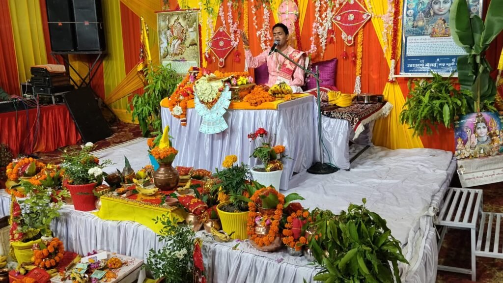 प्रसिद्ध कथा वाचक पंडित दीपक कृष्ण शास्त्री जी महाराज द्वारा श्रीमद् भागवत महापुराण की कथा का दिव्य वर्णन किया जा रहा है। यह आयोजन भक्तों को आध्यात्मिक ज्ञान प्रदान करने के उद्देश्य से किया जा रहा है, जिसमें भगवान विष्णु के अवतारों, भक्ति मार्ग और जीवन के गहन सत्य पर प्रकाश डाला जाएगा। स्थानीय बैंक कालोनी के निवासियों ने इसकी तैयारियां संभाली हैं, जो सामुदायिक एकता का प्रतीक बन चुका है।
